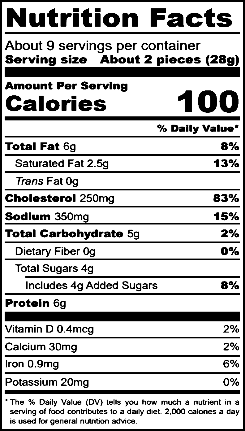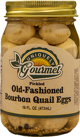 Ingredients: Quail eggs (quail eggs, water and salt), apple cider vinegar, vinegar, water, sugar, jalapeno, salt, bourbon, garlic, spices and citric acid.